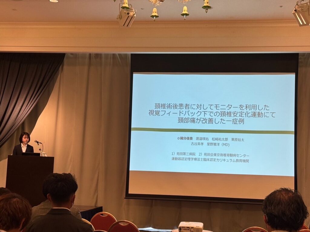 今回の経験は、日々の臨床場面を振り返ることができ新たな知識を得られとてもいい機会でした。他の理学療法士の発表もたくさん聴取出来ました!